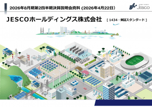 基本情報 会社コード: 14340 会社名: JESCO HD タイトル: 2026年8月期第2四半期決算説明会資料 発表日時: 2026年04月22日 15:30 PDF URL: https://www.releas […]