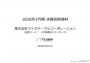 Y’s - 2026年2月期 決算説明資料 ★★新着!!
