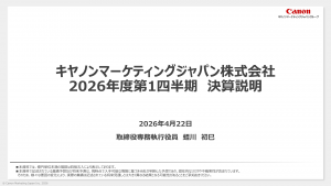 基本情報 会社コード: 80600 会社名: キヤノンMJ タイトル: 2026年12月期 第1四半期決算説明資料 発表日時: 2026年04月22日 15:30 PDF URL: https://www.release […]
