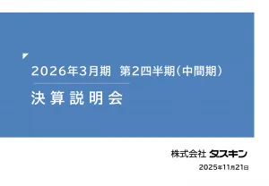 基本情報 会社コード: 46650 会社名: ダスキン タイトル: 2026年3月期 第2四半期(中間期)決算説明会資料 発表日時: 2025年11月21日 15:00 PDF URL: https://www.rele […]