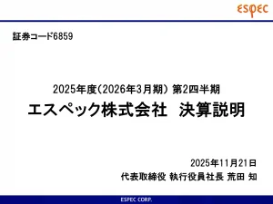 基本情報 会社コード: 68590 会社名: エスペック タイトル: 2026年3月期 第2四半期決算説明資料 発表日時: 2025年11月21日 13:00 PDF URL: https://www.release.t […]