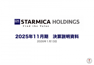 基本情報 会社コード: 29750 会社名: スター・マイカHD タイトル: 2025年11月期 決算説明資料 発表日時: 2026年01月13日 15:30 PDF URL: https://www.release.t […]