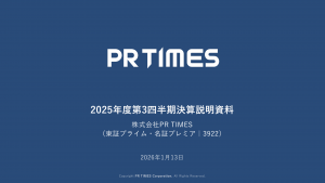 基本情報 会社コード: 39220 会社名: PRTIMES タイトル: 2025年度第3四半期決算説明資料 発表日時: 2026年01月13日 15:35 PDF URL: https://www.release.td […]