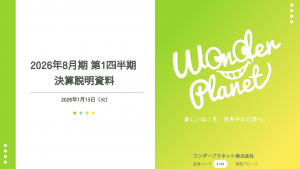 基本情報 会社コード: 41990 会社名: G-ワンプラ タイトル: 2026年8月期 第1四半期決算説明資料 発表日時: 2026年01月13日 15:30 PDF URL: https://www.release. […]