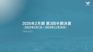 基本情報 会社コード: 23540 会社名: YE DIGITAL タイトル: 2026年2月期 第3四半期決算説明資料 発表日時: 2025年12月23日 16:00 PDF URL: https://www.rele […]