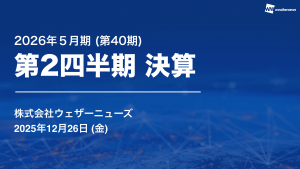 基本情報 会社コード: 48250 会社名: WNIウェザー タイトル: 2026年5月期 第2四半期 決算説明資料 発表日時: 2025年12月26日 15:30 PDF URL: https://www.releas […]