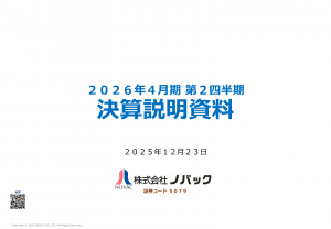 基本情報 会社コード: 50790 会社名: ノバック タイトル: 2026年4月期 第2四半期 決算説明資料 発表日時: 2025年12月23日 16:00 PDF URL: https://www.release.t […]