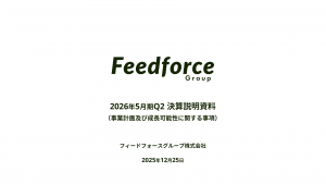 基本情報 会社コード: 70680 会社名: G-FフォースG タイトル: 2026年5月期Q2 決算説明資料(事業計画及び成長可能性に関する事項) 発表日時: 2025年12月25日 15:30 PDF URL: ht […]