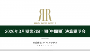 基本情報 会社コード: 97130 会社名: ロイヤルホテル タイトル: 2026年3月期 第2四半期(中間期)決算説明会資料 発表日時: 2025年12月26日 17:00 PDF URL: https://www.r […]