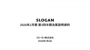 基本情報 会社コード: 92530 会社名: G-スローガン タイトル: 2026年2月期 第3四半期決算説明資料 発表日時: 2026年01月06日 15:30 PDF URL: https://www.release […]