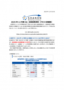 基本情報 会社コード: 39760 会社名: G-シャノン タイトル: 2025年12月期第4四半期決算説明資料(テキスト詳細版) 発表日時: 2025年12月18日 12:00 PDF URL: https://www […]