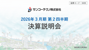 基本情報 会社コード: 34350 会社名: サンコーテクノ タイトル: 2026年3月期第2四半期 決算説明会資料 発表日時: 2025年11月28日 17:15 PDF URL: https://www.releas […]
