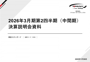 基本情報 会社コード: 51330 会社名: テリロジーHD タイトル: 2026年3月期 第2四半期(中間期)決算説明会資料 発表日時: 2025年11月28日 17:00 PDF URL: https://www.r […]
