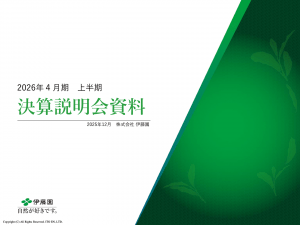 基本情報 会社コード: 25930 会社名: 伊藤園 タイトル: 2026年4月期 上半期 決算説明会資料 発表日時: 2025年12月01日 15:30 PDF URL: https://www.release.tdn […]
