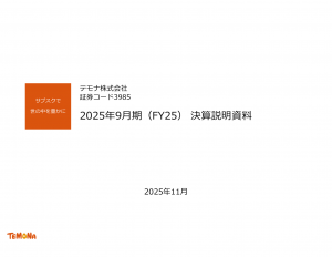 テモナ - 2025年9月期(FY25)決算説明資料 ★★新着!!