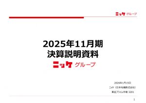 基本情報 会社コード: 32010 会社名: ニッケ タイトル: 2025年11月期 決算説明資料 発表日時: 2026年01月15日 15:00 PDF URL: https://www.release.tdnet.i […]