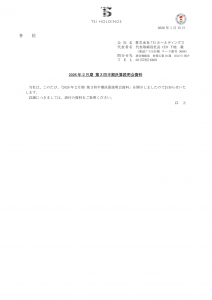 基本情報 会社コード: 36080 会社名: TSI HD タイトル: 2026年2月期 第3四半期決算説明会資料 発表日時: 2026年01月15日 10:00 PDF URL: https://www.release […]
