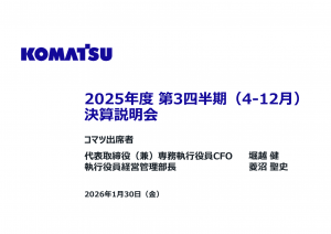 基本情報 会社コード: 63010 会社名: コマツ タイトル: 2025年度第3四半期(4-12月)決算説明会資料 発表日時: 2026年01月30日 14:30 PDF URL: https://www.releas […]