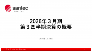 基本情報 会社コード: 67770 会社名: santecHD タイトル: 2026年3月期 第3四半期決算説明資料 発表日時: 2026年01月30日 15:40 PDF URL: https://www.releas […]