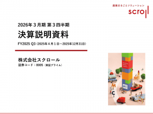 基本情報 会社コード: 80050 会社名: スクロール タイトル: 2026年3月期 第3四半期決算説明資料 発表日時: 2026年01月30日 15:30 PDF URL: https://www.release.t […]