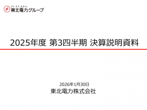 基本情報 会社コード: 95060 会社名: 東北電力 タイトル: 2025年度 第3四半期決算説明資料 発表日時: 2026年01月30日 15:00 PDF URL: https://www.release.tdne […]