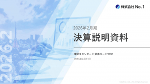 基本情報 会社コード: 35620 会社名: No.1 タイトル: 2026年2月期 決算説明資料 発表日時: 2026年04月13日 15:30 PDF URL: https://www.release.tdnet.i […]