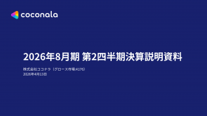 基本情報 会社コード: 41760 会社名: G-ココナラ タイトル: 2026年8月期第2四半期決算説明資料 発表日時: 2026年04月13日 15:30 PDF URL: https://www.release.t […]