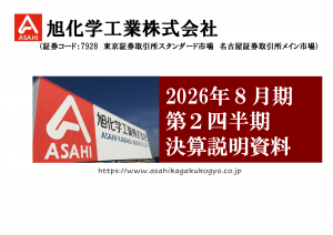基本情報 会社コード: 79280 会社名: 旭化学 タイトル: 2026年8月期第2四半期 決算説明資料 発表日時: 2026年04月13日 15:30 PDF URL: https://www.release.tdn […]