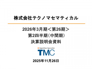 基本情報 会社コード: 37870 会社名: テクノマセマ タイトル: 2026年3月期<第26期>第2四半期(中間期)決算説明会資料 発表日時: 2025年11月27日 15:30 PDF URL: https://w […]