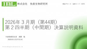 基本情報 会社コード: 45700 会社名: G-免疫生物研究所 タイトル: 2026年3月期(第44期)第2四半期(中間期)決算説明資料 発表日時: 2025年11月27日 15:30 PDF URL: https:/ […]
