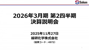 基本情報 会社コード: 49720 会社名: 綜研化学 タイトル: 2026年3月期第2四半期決算説明会資料 発表日時: 2025年11月27日 16:00 PDF URL: https://www.release.td […]