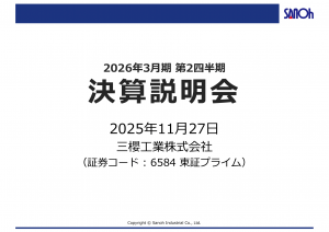 基本情報 会社コード: 65840 会社名: 三桜工 タイトル: 2026年3月期第2四半期 決算説明会資料 発表日時: 2025年11月27日 15:30 PDF URL: https://www.release.td […]