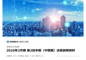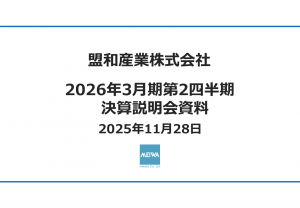 基本情報 会社コード: 72840 会社名: 盟和産 タイトル: 2026年3月期第2四半期決算説明会資料 発表日時: 2025年11月28日 10:30 PDF URL: https://www.release.tdn […]