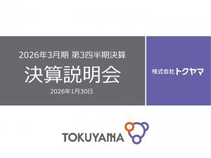 基本情報 会社コード: 40430 会社名: トクヤマ タイトル: 2026年3月期第3四半期決算説明資料 発表日時: 2026年01月30日 09:00 PDF URL: https://www.release.tdn […]