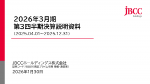 基本情報 会社コード: 98890 会社名: JBCC HD タイトル: 2026年3月期 第3四半期決算説明資料 発表日時: 2026年01月30日 11:30 PDF URL: https://www.release […]