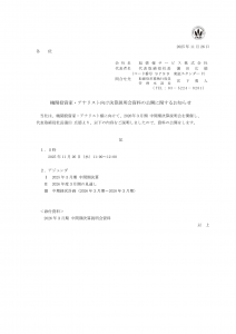 基本情報 会社コード: 97990 会社名: 旭情報 タイトル: 機関投資家・アナリスト向け決算説明会資料の公開に関するお知らせ 発表日時: 2025年11月26日 16:00 PDF URL: https://www. […]