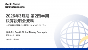 基本情報 会社コード: 98280 会社名: ゲンキGDC タイトル: 2026年3月期第2四半期 決算説明会資料~10年後を見据えた経営ビジョンについて~ 発表日時: 2025年11月26日 16:00 PDF URL […]