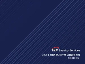 基本情報 会社コード: 58340 会社名: G-SBIリーシング タイトル: 2026年3月期 第3四半期決算説明資料 発表日時: 2026年01月29日 11:30 PDF URL: https://www.rele […]