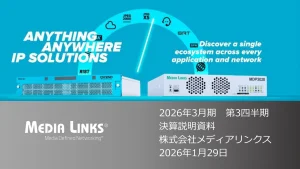 基本情報 会社コード: 66590 会社名: メディアリンクス タイトル: 2026年3月期 第3四半期決算説明資料 発表日時: 2026年01月29日 15:30 PDF URL: https://www.relea […]
