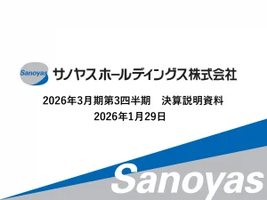 基本情報 会社コード: 70220 会社名: サノヤスHD タイトル: 2026年3月期 第3四半期決算説明資料 発表日時: 2026年01月29日 15:30 PDF URL: https://www.release. […]