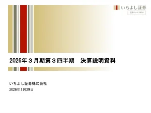 基本情報 会社コード: 86240 会社名: いちよし タイトル: 2026年3月期第3四半期決算説明資料 発表日時: 2026年01月29日 12:45 PDF URL: https://www.release.tdn […]