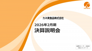 基本情報 会社コード: 26690 会社名: カネ美食品 タイトル: 2026年2月期 決算説明会資料 発表日時: 2026年04月09日 15:30 PDF URL: https://www.release.tdnet […]