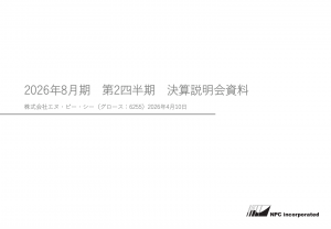 基本情報 会社コード: 62550 会社名: G-NPC タイトル: 2026年8月期 第2四半期決算説明会資料 発表日時: 2026年04月10日 11:00 PDF URL: https://www.release. […]