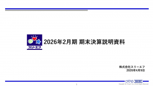 基本情報 会社コード: 75440 会社名: スリーエフ タイトル: 2026年2月期 期末決算説明資料 発表日時: 2026年04月09日 16:00 PDF URL: https://www.release.tdne […]