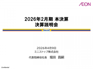 基本情報 会社コード: 99460 会社名: ミニストップ タイトル: 2026年2月期決算説明会資料 発表日時: 2026年04月09日 16:00 PDF URL: https://www.release.tdnet […]