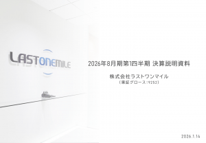 基本情報 会社コード: 92520 会社名: G-ラストワンマイル タイトル: 2026年8月期第1四半期決算説明資料 発表日時: 2026年01月14日 15:30 PDF URL: https://www.relea […]