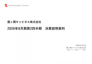 基本情報 会社コード: 34980 会社名: 霞ヶ関キャピタル タイトル: 2026年8月期第2四半期決算説明資料 発表日時: 2026年04月03日 18:00 PDF URL: https://www.release […]