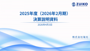 基本情報 会社コード: 62790 会社名: 瑞光 タイトル: 2025年度(2026年2月期)通期決算説明資料 発表日時: 2026年04月03日 16:00 PDF URL: https://www.release. […]